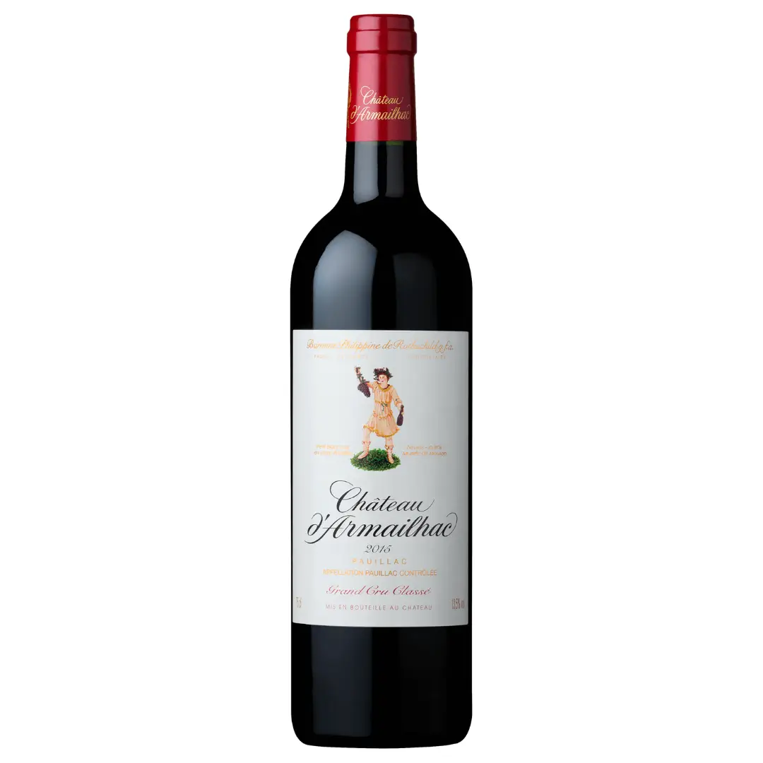 Le Château d’Armailhac 2015 est un grand vin rouge de l’appellation Pauillac, classé Cinquième Grand Cru Classé en 1855. Propriété de la famille Rothschild, ce domaine emblématique de la rive gauche produit des vins élégants, structurés et fidèles au style classique de Pauillac.